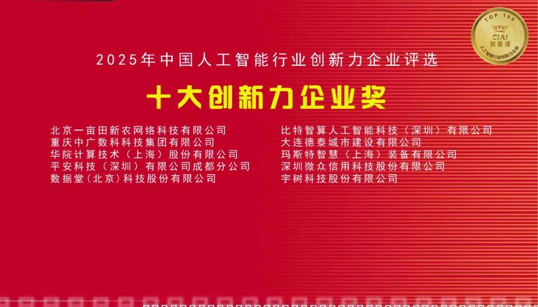 2025年中国人工智能行业“十大创新力企业奖”