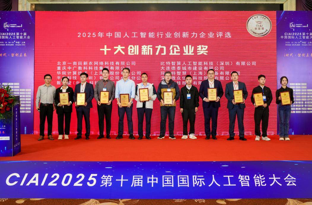 10月28日上午在大会现场举行的“2025年中国人工智能行业创新力企业评选”颁奖典礼,现场发布了2025年中国人工智能行业创新力企业百强榜单,并颁发2025年中国人工智能行业“十大创新力企业”、2025年中国人工智能行业“十大创新力产品”、2025年中国人工智能行业“十大最具投资价值企业” 等多个重要奖项。