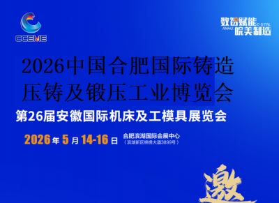 2026中国合肥国际铸造、压铸及锻压工业博览会 地 点:安徽滨湖国际会展中心 时 间:2026年5月14-16日 合计展出面积50000平米,重点展示铸造、压铸及锻压设备、